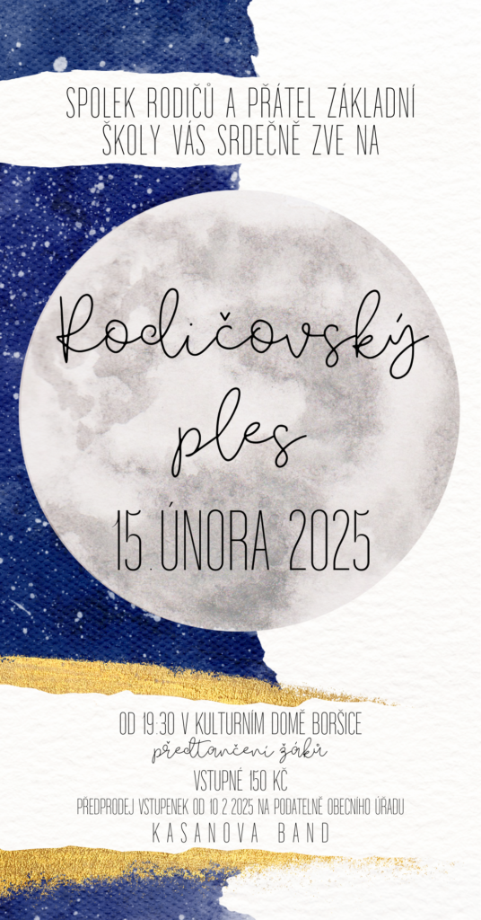 Vážení příznivci naší školy, přijměte srdečné pozvání na Rodičovský ples, který se uskuteční dne 15. února 2025 od 19:30 hodin v Kulturním domě v Boršicích. Těšíme se na Vás!