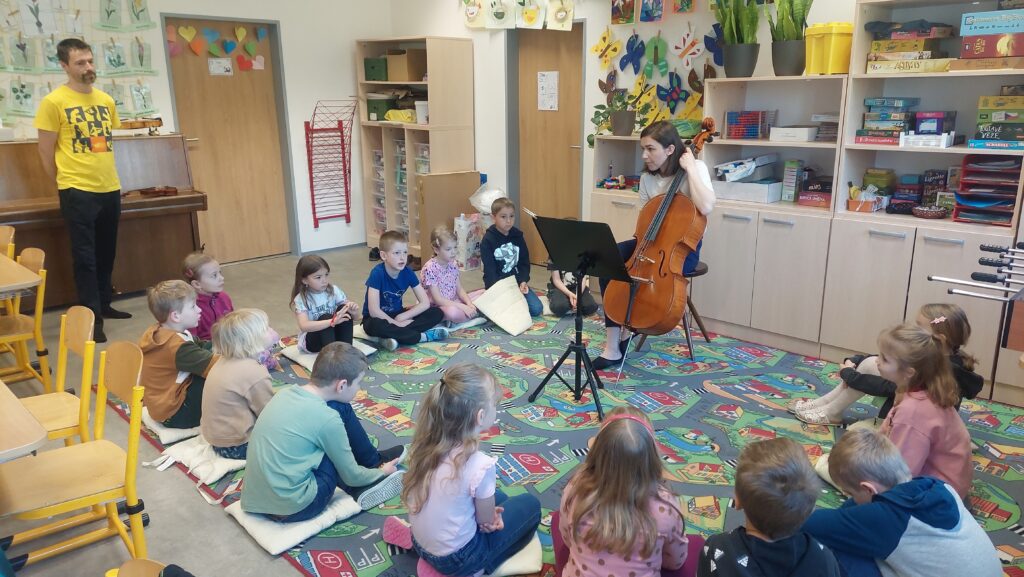 Pan učitel Špalek a MgA. Aneta Chlachula si pro žáky 2. a 3. tříd připravili besedu o hudebních nástrojích, spojenou s hudebními ukázkami a možností si hru na violoncello vyzkoušet. Děkujeme ZUŠ a výše jmenovaným za hudební produkci a přiblížení hudby dětem. třídní učitelky 2. a 3. tříd Fotografie budou postupně doplněny: https://eu.zonerama.com/ZSBorsice/Album/13196194