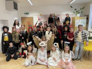 V předvečer sv. Mikuláše se prvňáčci učili jinak. Převlekli se za čertíky a andílky, některým to úplně sedlo. Výuka byla netradiční, projektová, při které ve