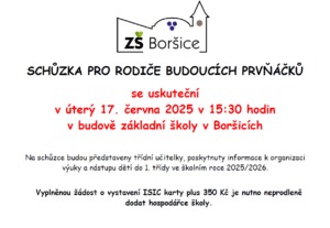 Školní jídelna při mateřské škole Boršice oznamuje rodičům žáků základní školy, pokud mají zájem o stravování ve školním roce 2025-2026, musí své děti ke stravování