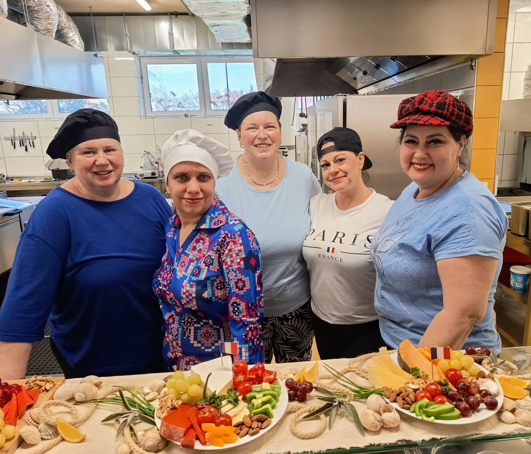 Velké poděkování patří paní učitelce francouzského jazyka Haně Juráskové za organizaci a přípravu celého tématického dne, včetně výzdoby jídelny, a za aktivní zapojení do spolupráce se školní jídelnou. Dále paní Marii Mrvové za originální výzdobu v podobě francouzských specialit a všem kolegyním z kuchyně za obrovské nasazení při přípravě menu.