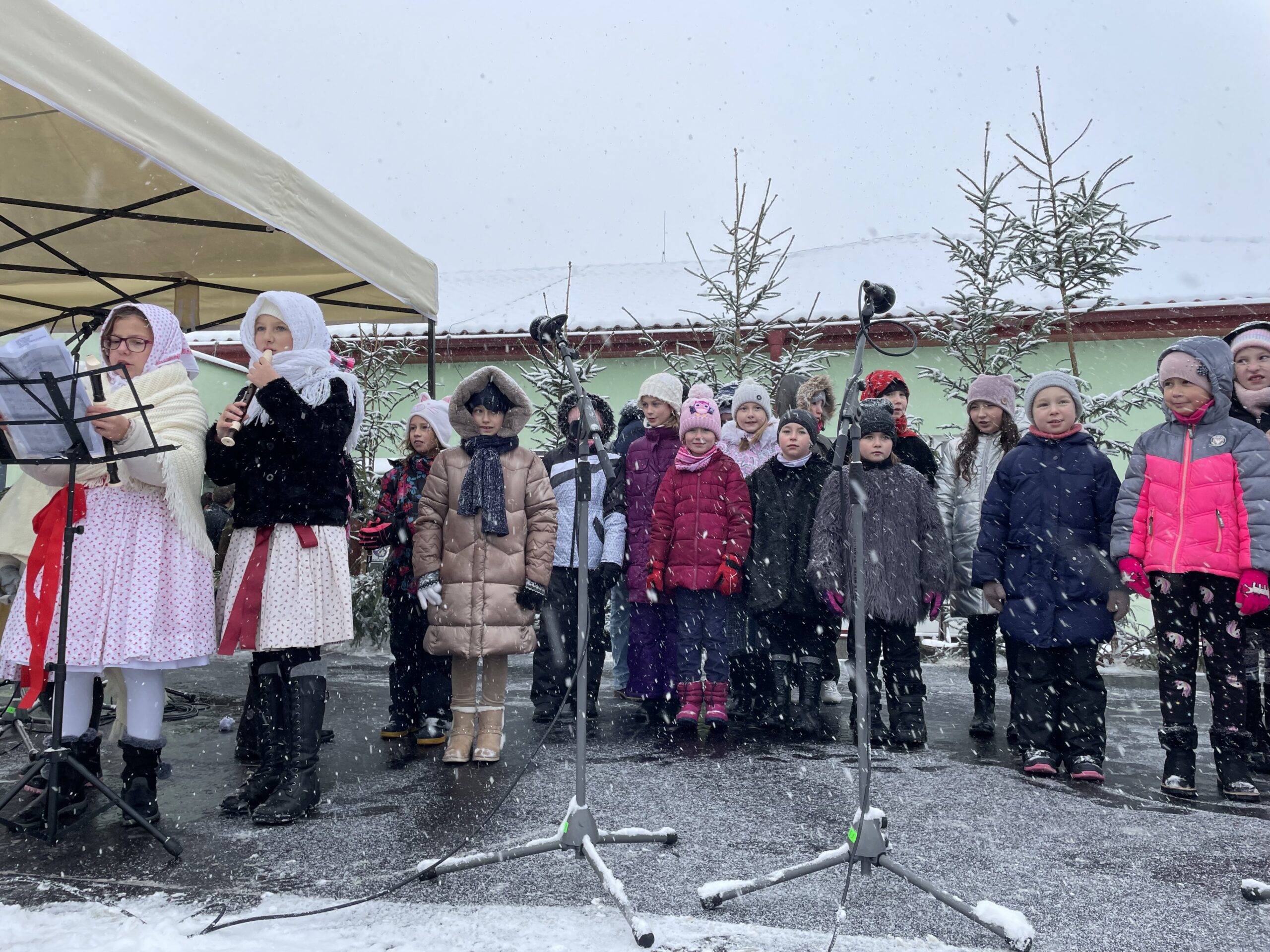 V sobotu 2. 12. 2023 zazpíval sbor na Mikulášském jarmarku. Letos nás bylo 24 a z toho 3 děvčata hrála na flétnu i v tak chladném počasí. Zaznělo celkem 8 písní: o měsících, pohádce, zimě, Martinovi, čertech, adventu i o Vánocích.