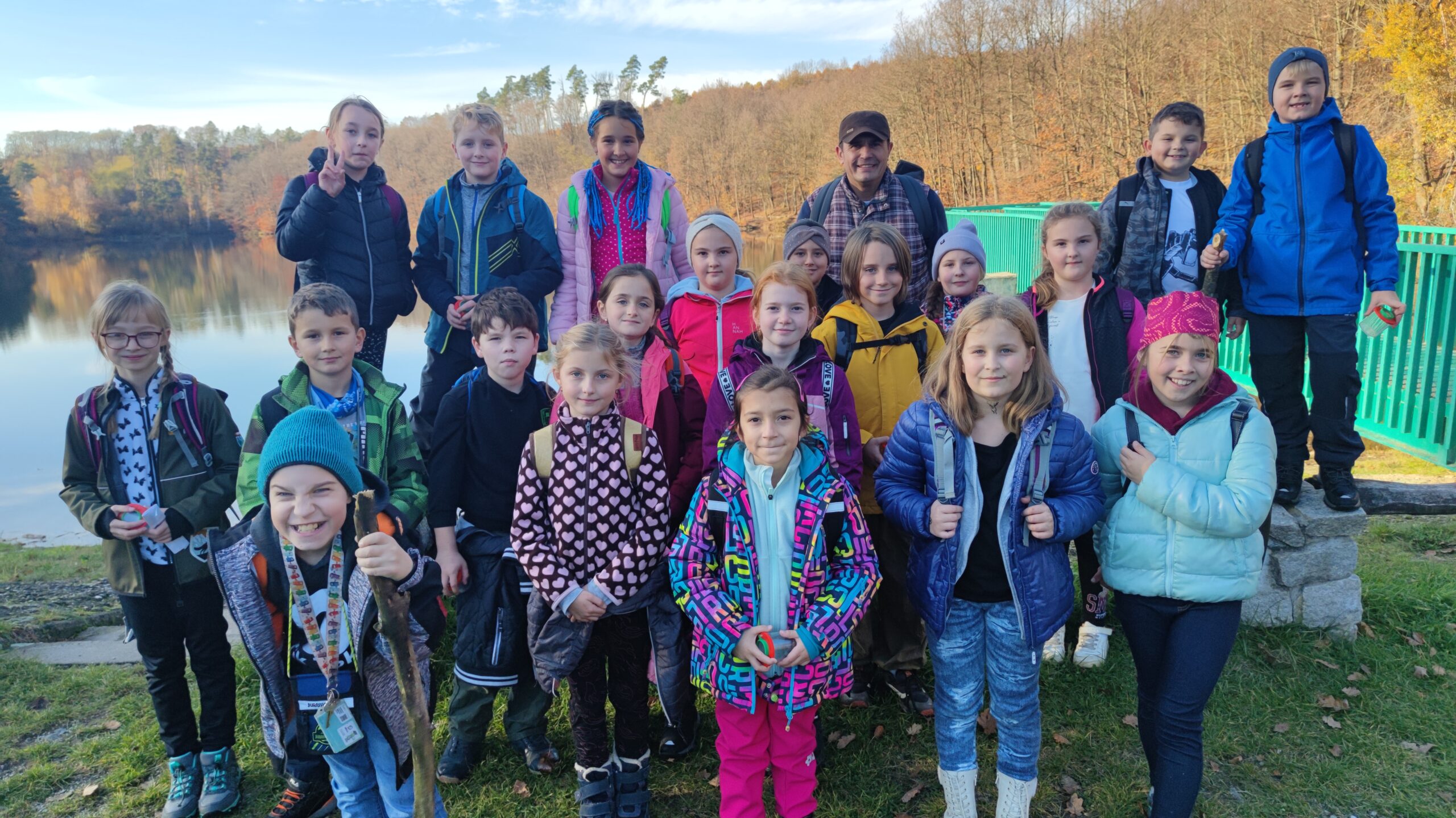 Cestou žáci pozorovali podzimní přírodu a měli možnost vidět na vlastní oči šídlo, různé druhy pavouků a brouků, které se v tomto období vyskytují. Velkým zážitkem bylo i pozorování volavky. Děti se neseznamovaly pouze se živočichy, ale také s rostlinami, které lemovaly naši trasu kolem rybníka a dále lesem až k ohništi.