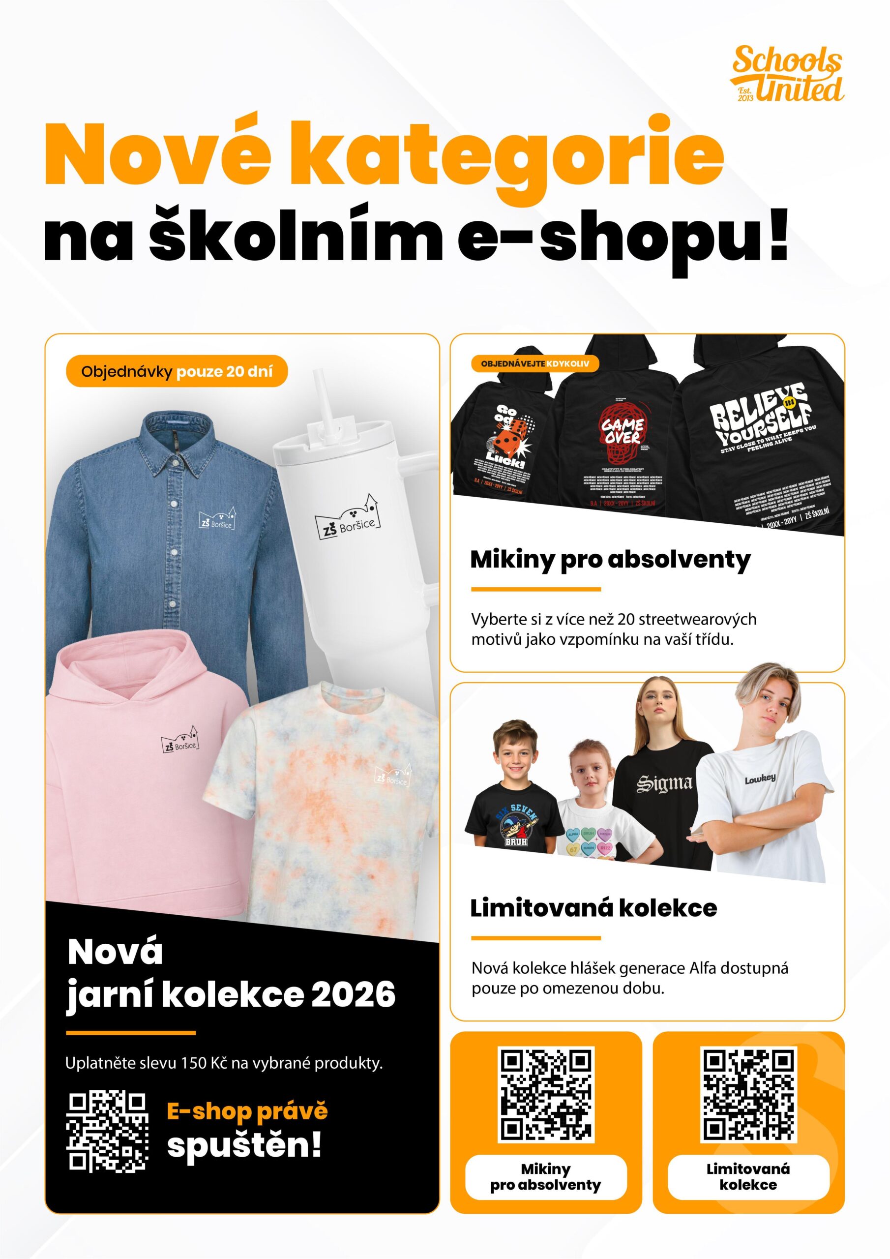 s radostí Vám dáváme vědět, že školní e-shop Vaší školy je plně připraven ke spuštění – včetně nové kolekce, která posiluje sounáležitost, hrdost a vztah ke škole napříč žáky, rodiči i učiteli. E-shop je aktivní do 5.dubna 2026!